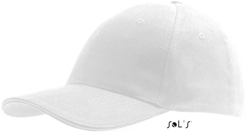 A baseball sapka napellenzője meg van hajlítva, hogy jobban védjen a nap ellen. A fehér baseball sapkát körben hímzett, 6 szellőzőnyílással látták el.
