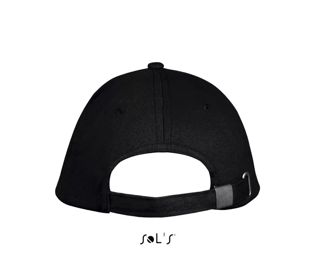 A fekete baseball sapka anyaga 100% pamutból készült, 260 g/m² súlyú.