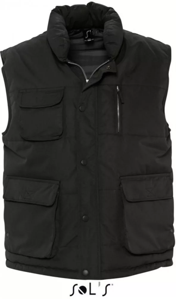 Kiváló minőségű termékünk ez a klasszikus szabású szélálló és vízlepergető fekete bélelt mellény húzózsinórral állítható derékrésszel.