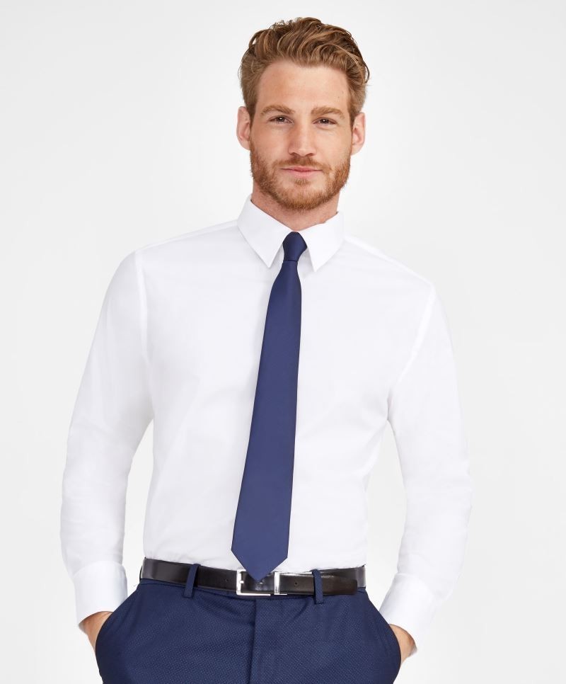 Kiváló minőségű termékünk ez a férfi, enyhén karcsúsított szabású hosszú ujjú fehér ing.