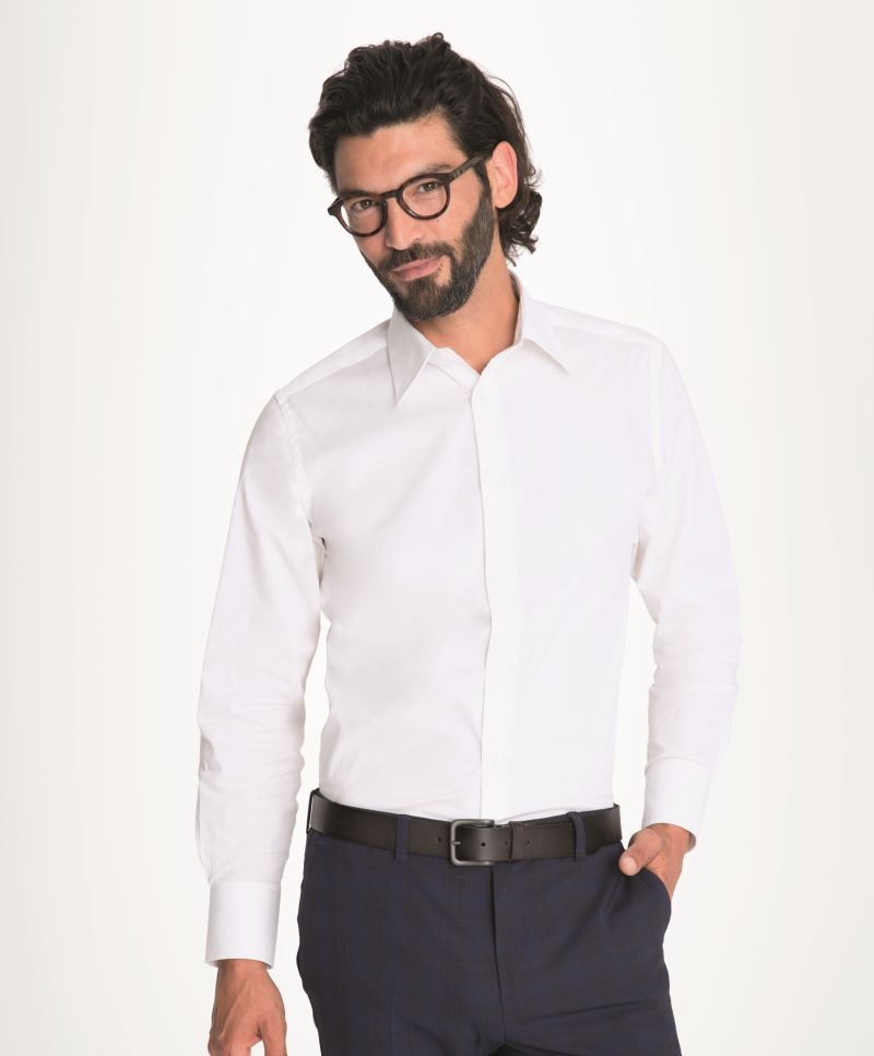 Enyhén karcsúsított szabású, kiváló minőségű hosszú ujjú fehér ing.