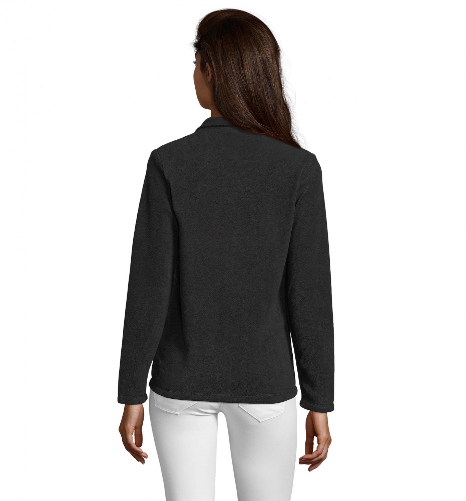 A fekete női polár pulóver anyaga 100% poliészterből készült, 220 g/m2 súlyú.
