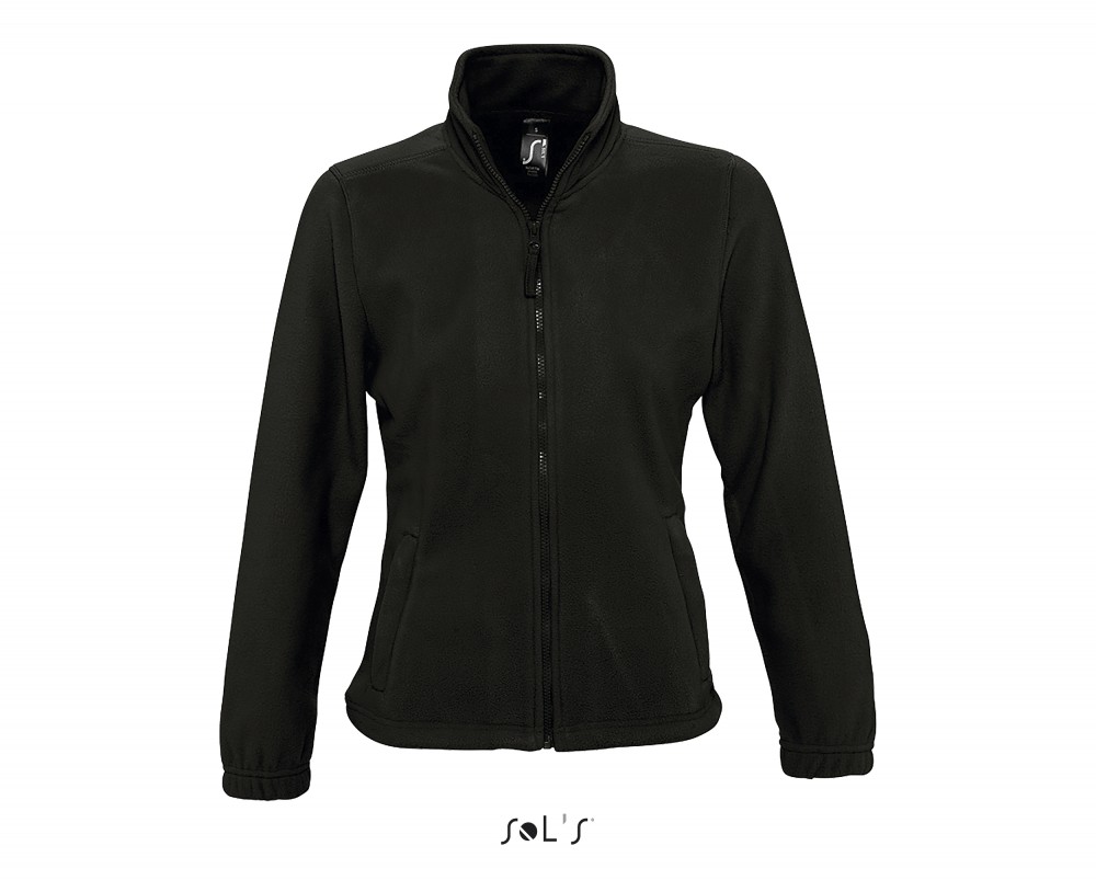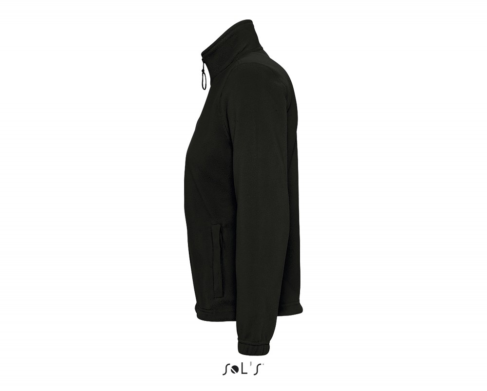 A női polár pulóver 2 cipzáras oldalzsebbel és magas gallérral készült. A nyakrész szalagos megerősítést kapott hogy a pulóver tartósabb legyen.
