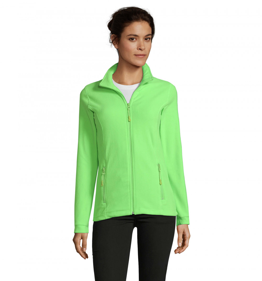 A zöld női polár pulóver anyaga 100% poliészterből készült, 200 g/m2 súlyú. Göbösödésgátló eljárással kezelve!