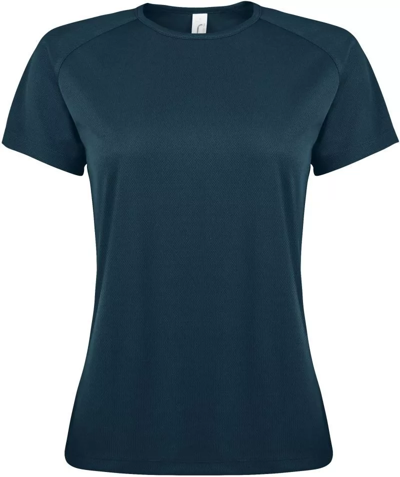 Kiváló minőségű termékünk ez a sportos fazonú, légáteresztő kék rövid ujjú női póló.