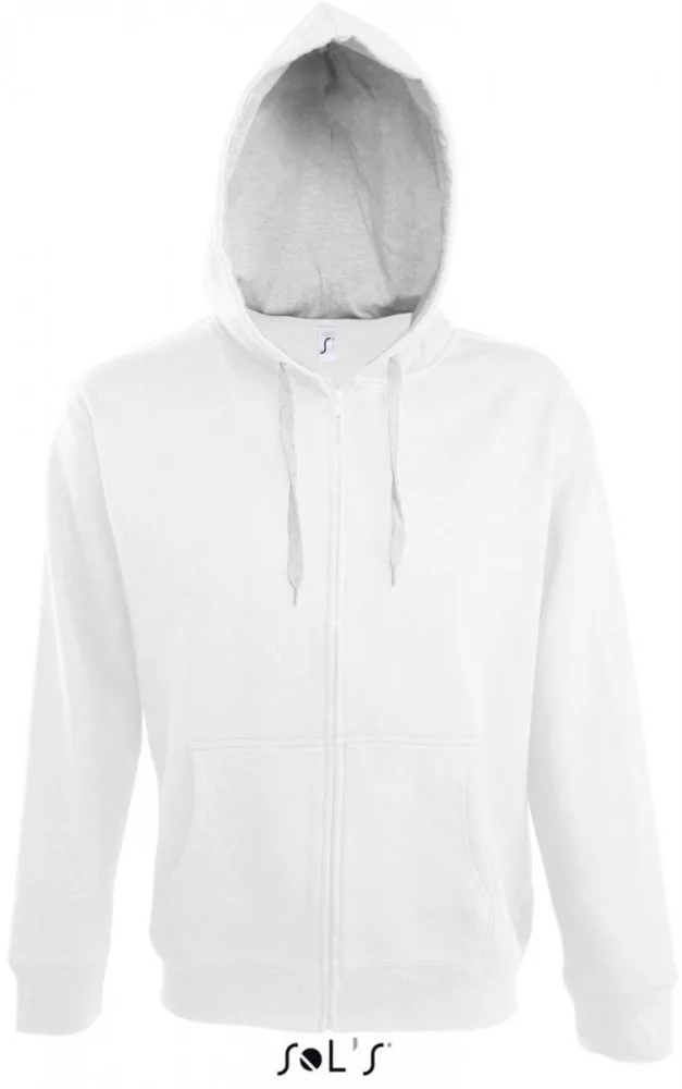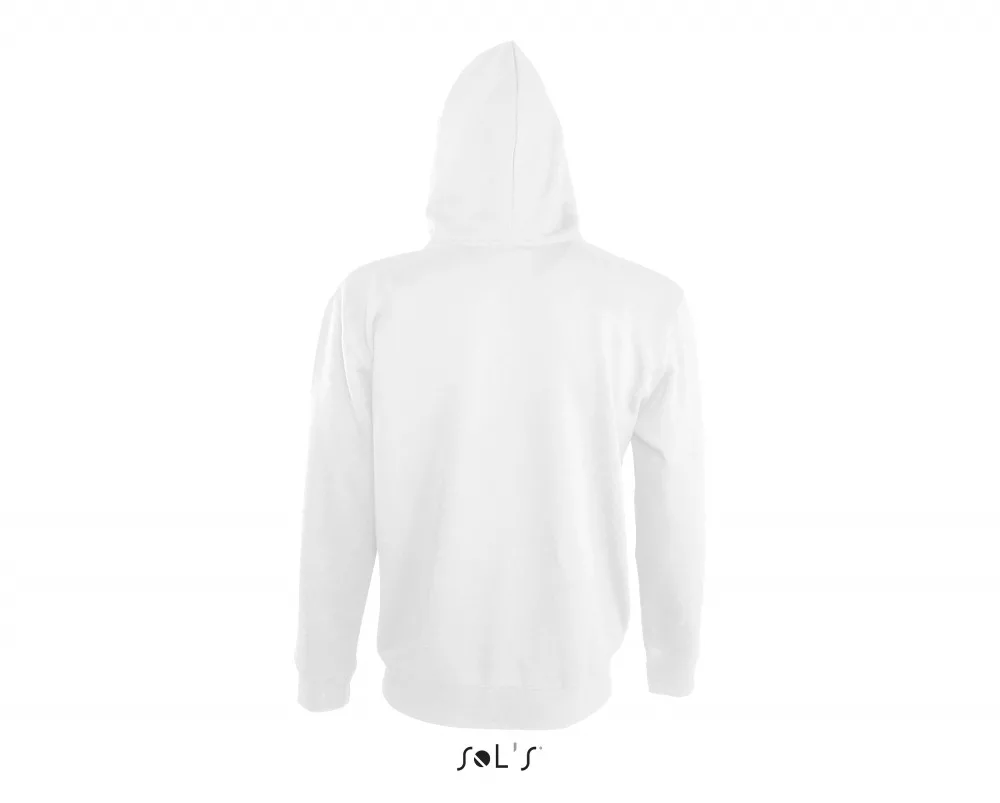 Kiváló minőségű termékünk ez az klasszikus szabású, fehér pulóver, kapucnival és kenguru zsebekkel.