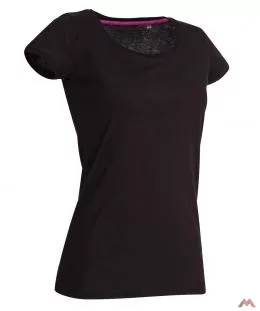 A váll és nyakrész szalagos megerősítést kapott, hogy a női póló tartósabb és ellenállóbb legyen.