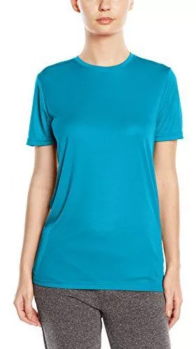 A kék póló "Cool-Dry" tulajdonsággal rendelkezik, avagy a poliészternek köszönhetően kiváló nedvességelvezető és gyorsan száradó. Ezek a tulajdonságok sportolás vagy nehéz fizikai munka esetén roppant hasznosak, hiszen a női póló nem nedves az izzadtságtól, ezáltal nem hűti mellkasunkat, hátunkat.