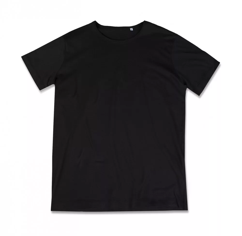 Kiváló minőségű termékünk ez a klasszikus szabású fekete pamut póló oldalvarrással.
