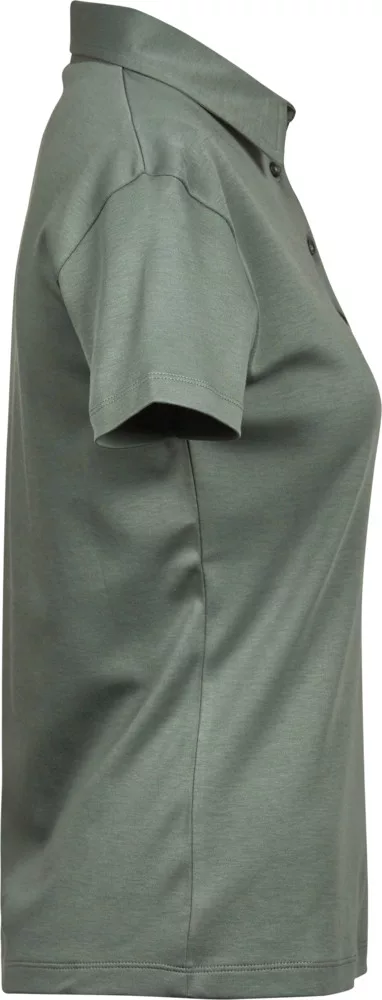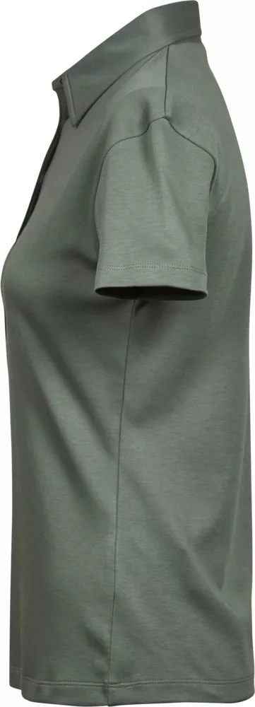 A zöld női galléros póló anyaga 100% pamutból (pima) készült, 220 g/m2 súlyú. A női póló duplán előzsugorított és enzim mosott.