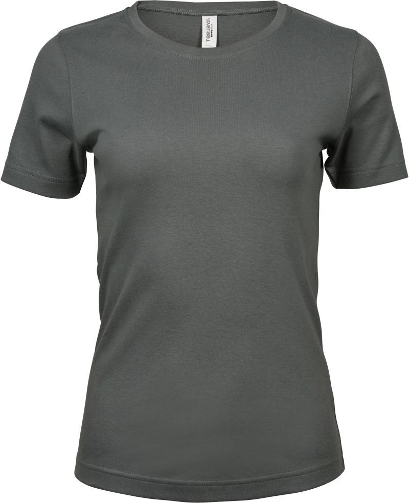 Enyhén karcsúsított szabású, kiváló minőségű, szürke rövid ujjú női póló, single jersey anyagból!