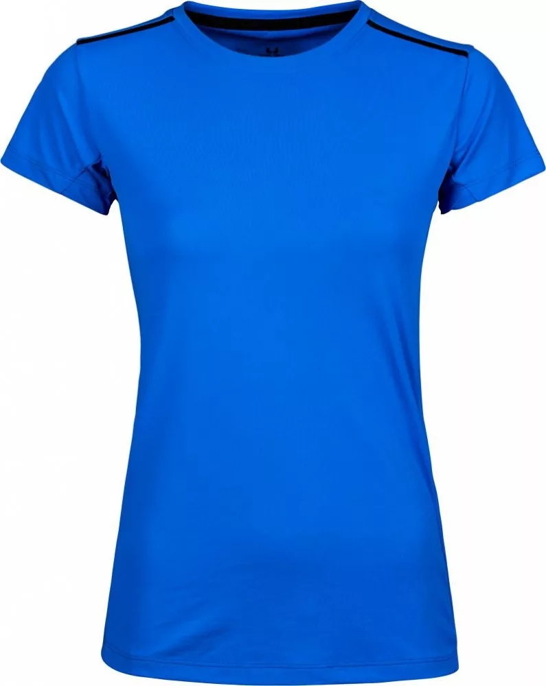 Sportos fazonú, kiváló minőségű légáteresztő és gyorsan száradó kék női technikai póló