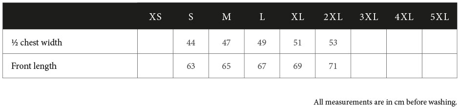 A termék az alábbi méretekben kapható: S, M, L, XL, XXL