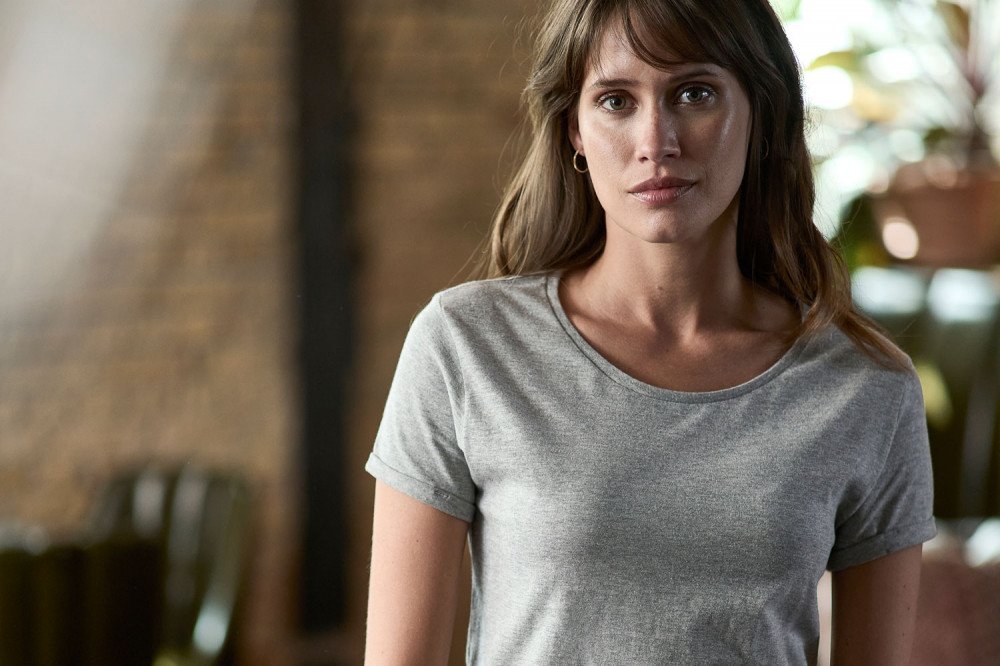 Karcsúsított, lezser szabású, kiváló minőségű szürke női póló, single jersey anyagból