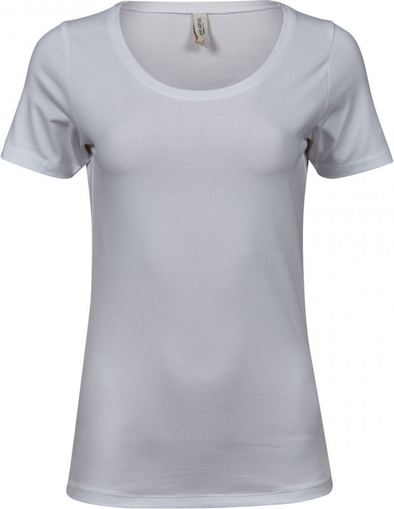 Karcsúsított szabású, kiváló minőségű, fehér rövid ujjú női póló, simább felületű és formatartóbb full feeder elasztánnal!