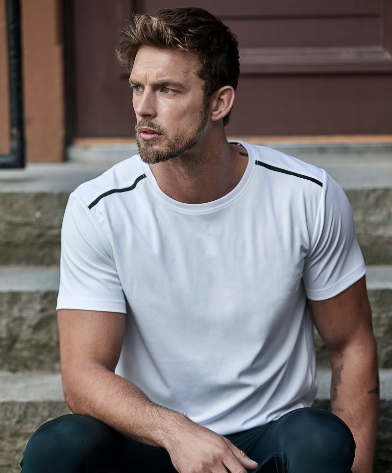 Sportos fazonú, kiváló minőségű légáteresztő és gyorsan száradó rövid ujjú technikai póló.