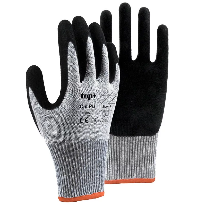 Top PU mártott vágásbiztos kesztyű Cut 5 szürke-fekete
