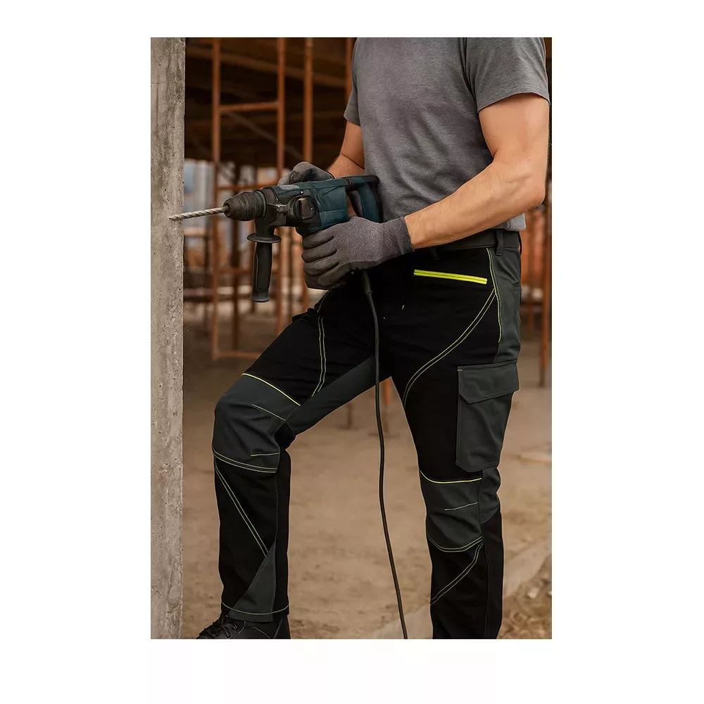 Urgent munkásnadrág Stretch 763 fekete-szürke-lime