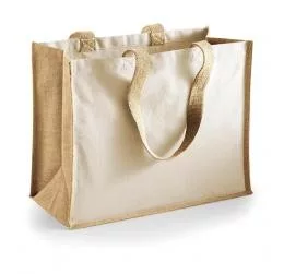 A natúr táska szélesebb oldalának az anyaga 100% pamutvászonból, még a rövidebb oldalak és aljnak az anyaga 100% jutából készültek.