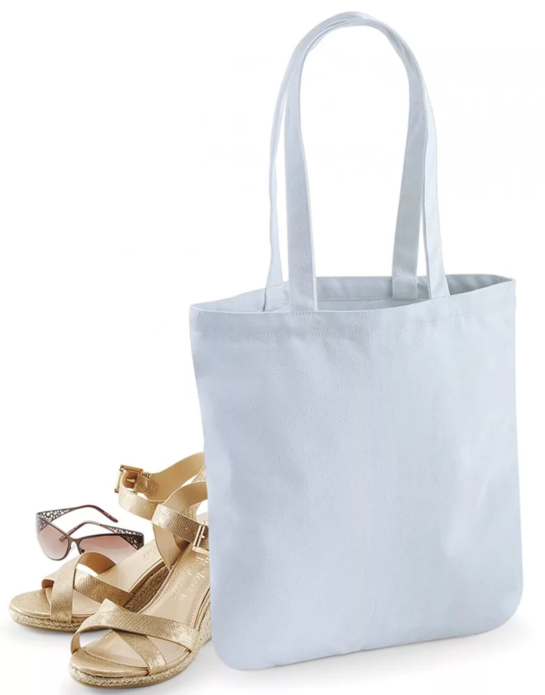 A kék vászon táska anyaga 100% pamutból (organikus, bolyhos vászon) készült, 407 g/m2 súlyú. Prémium minőségű, vastagabb anyagból készült.