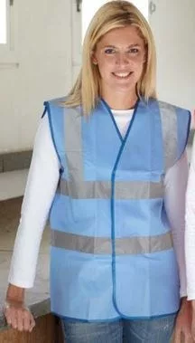 A kék jól láthatósági mellényen elhelyezett dupla fényvisszaverő csíkok sötétben jól láthatóvá teszik a viselőjét!