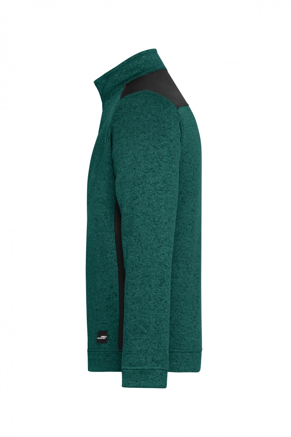 James&Nicholson polár pulóver Strong Knitted Half-Zip 280 melírozott sötétzöld-fekete