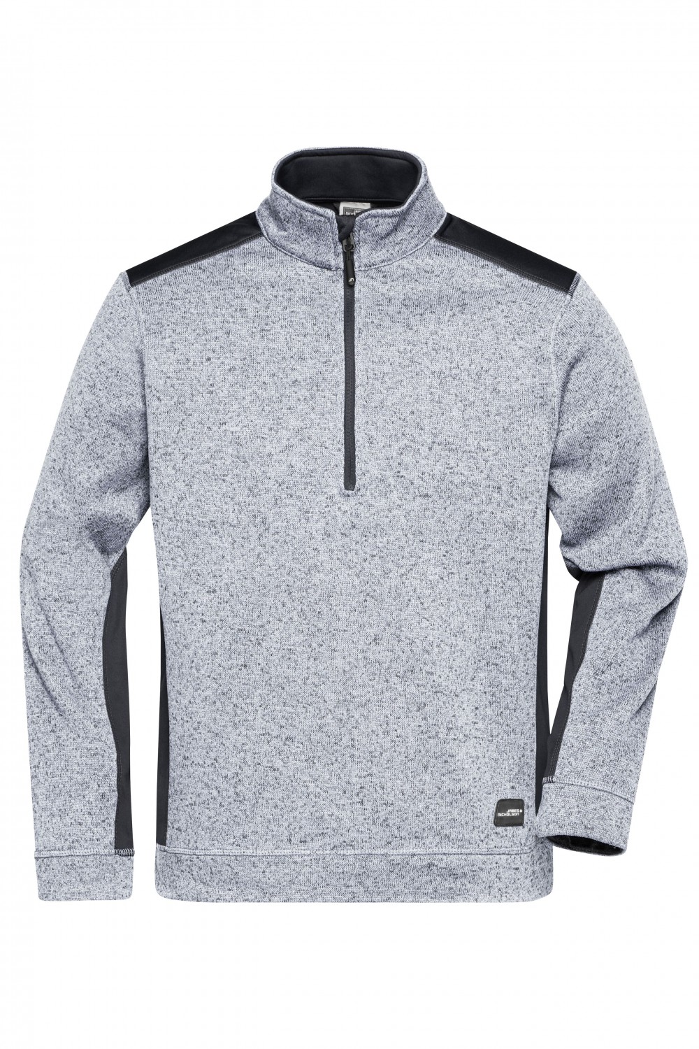 James&Nicholson polár pulóver Strong Knitted Half-Zip 280 melírozott fehér-carbon