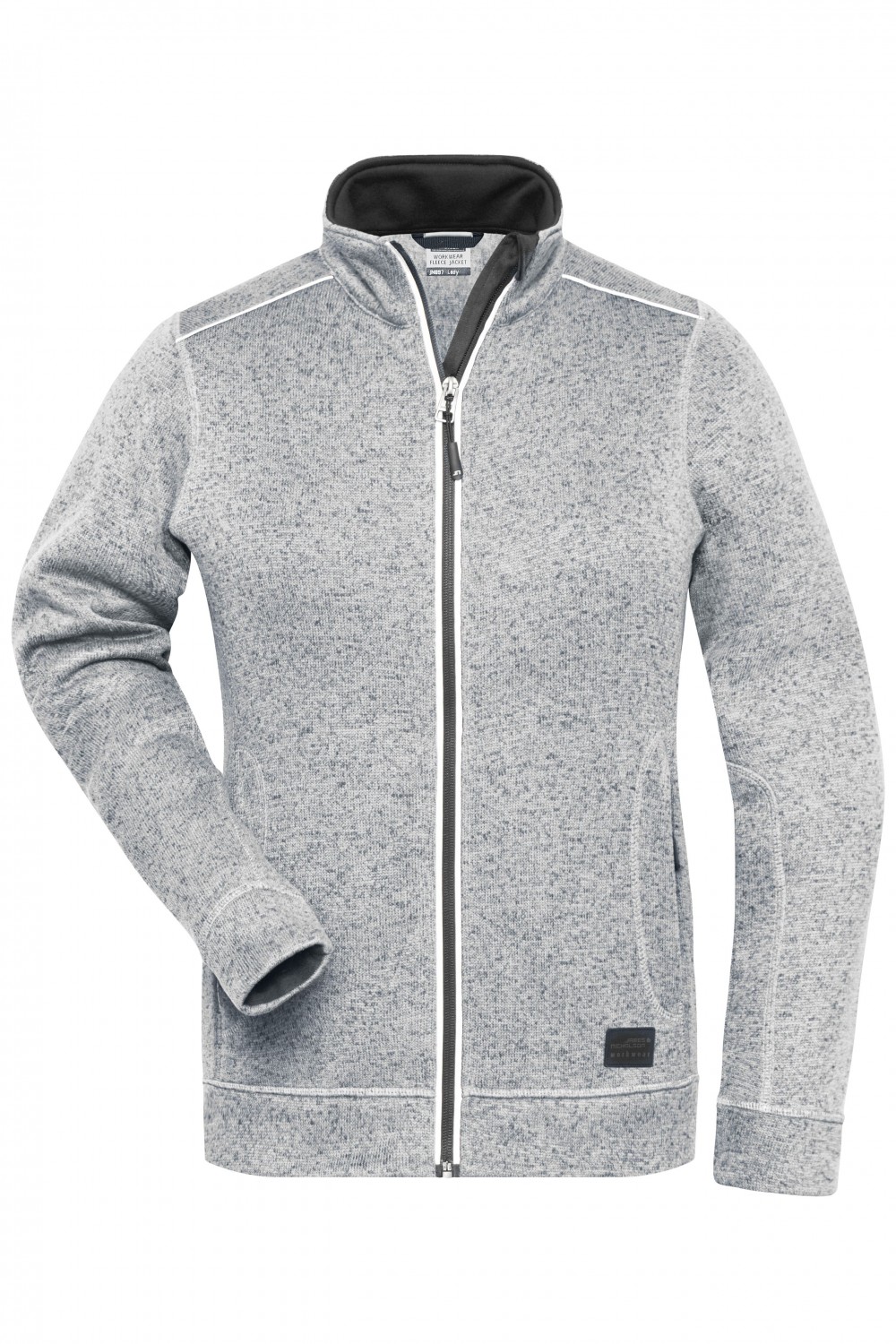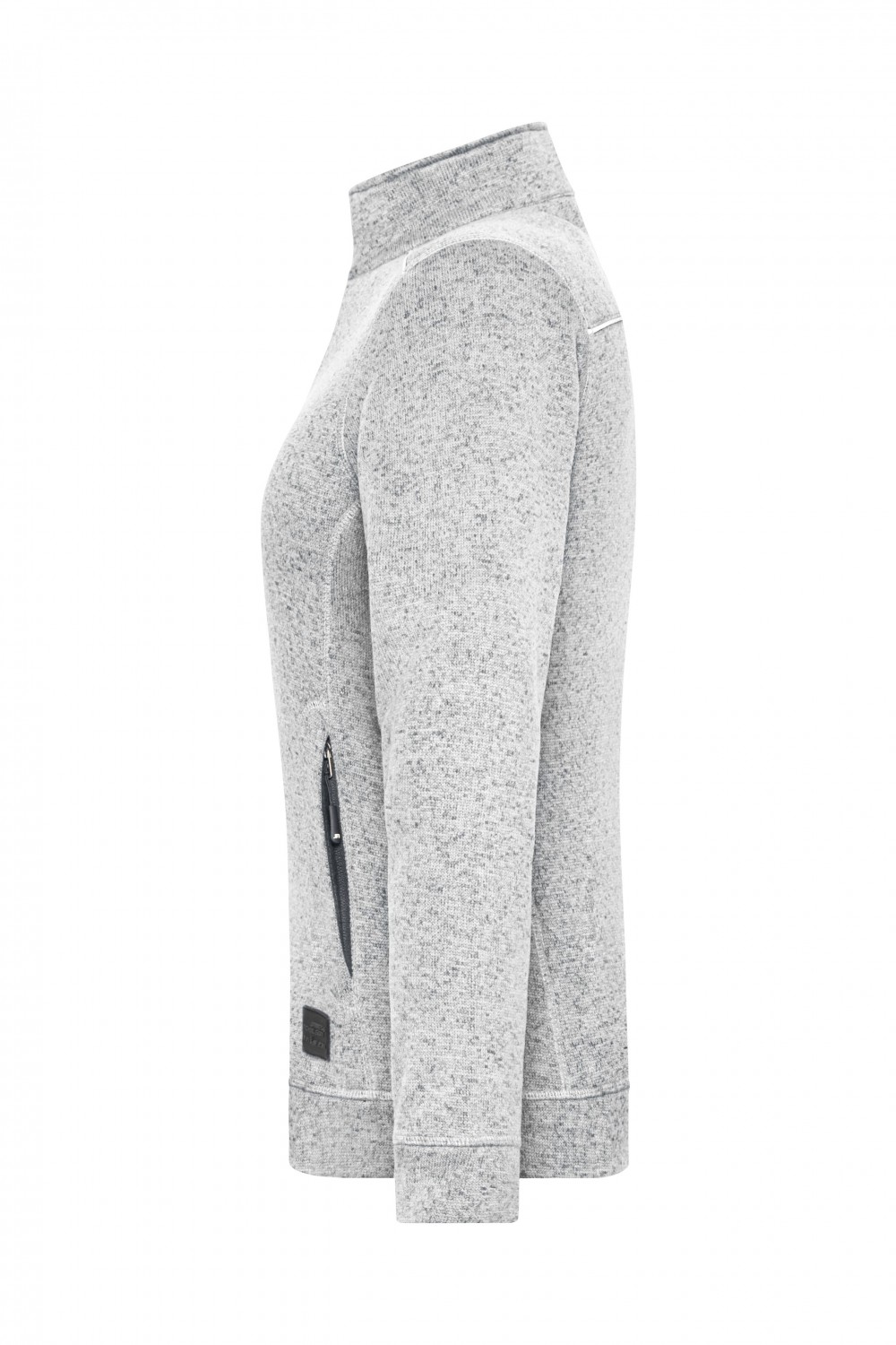 James&Nicholson női polár pulóver Solid Knitted 280 melírozott fehér-carbon