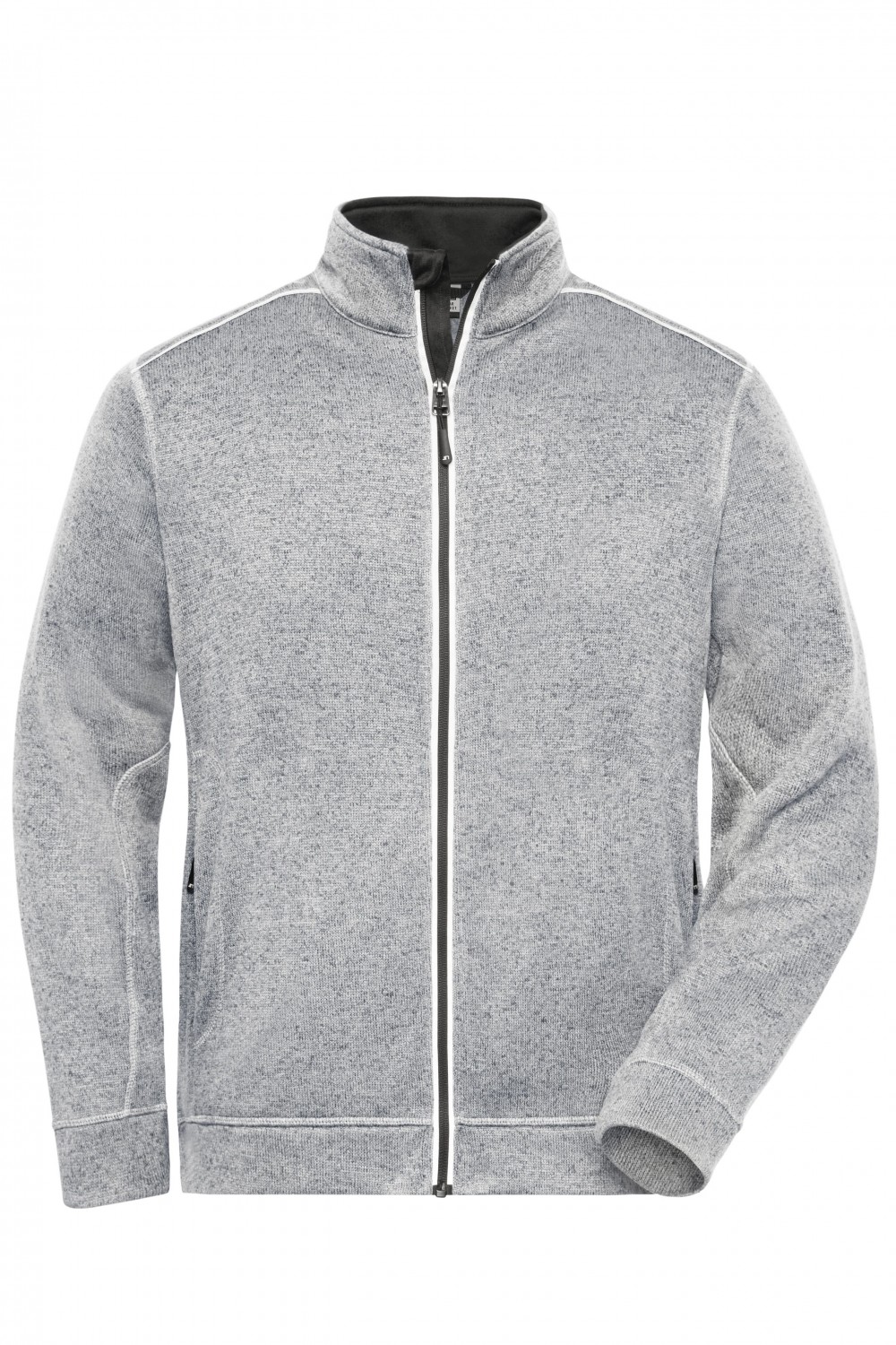James&Nicholson polár pulóver Solid Knitted 280 melírozott fehér-carbon