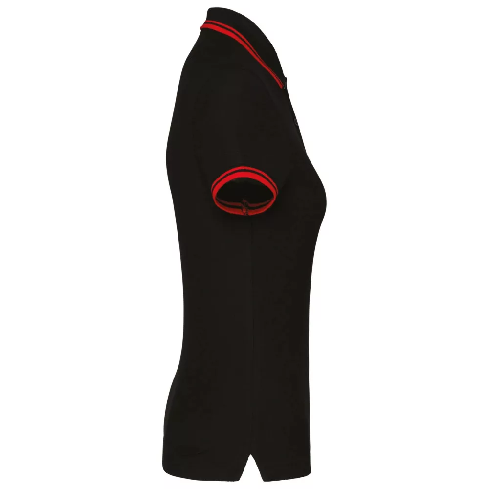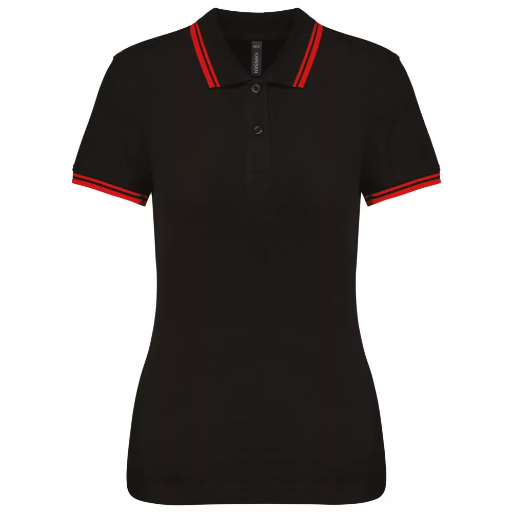 Kariban női galléros póló Striped Pique 180 fekete-piros