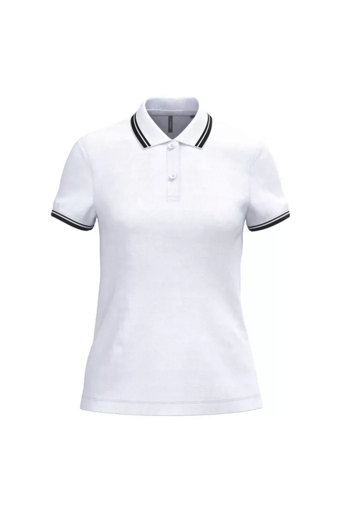 Kariban női galléros póló Striped Pique 180 fehér-fekete