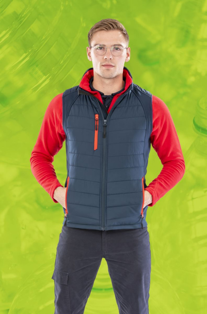 Klasszikus szabású, különösen puha, könnyű és meleg Result R238X mellény, bélelt állógallérral, YKK cipzár állvédővel, kontrasztos színű, cipzáras mell- és oldalzsebekkel, szegélyezett karkivágással és emblémázást segítő kialakítással, víz- és szélálló részben újrahasznosított (REPREVE®, TOPGREEN®) szövetből!