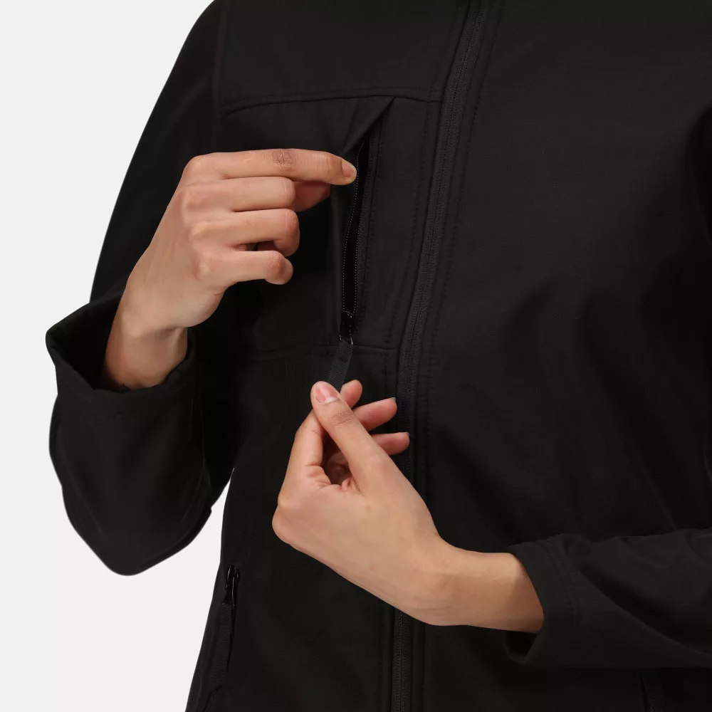 - A fekete softshell dzseki kontrasztos díszítő betétekkel van elkészítve, a dizájnosabb megjelenés érdekében.
