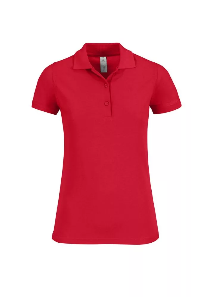 Karcsúsított szabású, kiváló minőségű piros galléros női póló pamut-piké anyagból